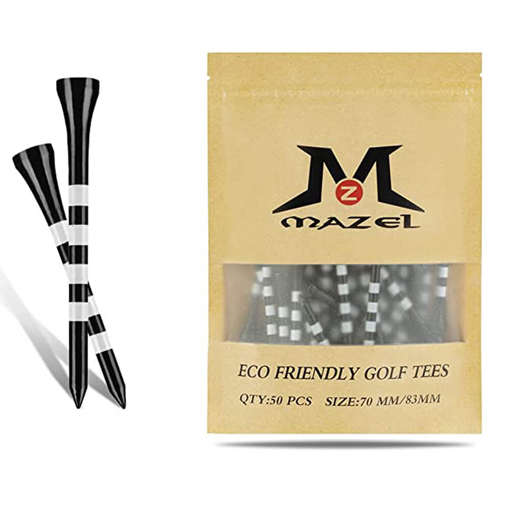 All golf tees are packaged well in the outer bag,include 25 pcs brown (2-3/4") and 25 pcs black white (3-1/4"),it will be a long time before you run out our golf tees.