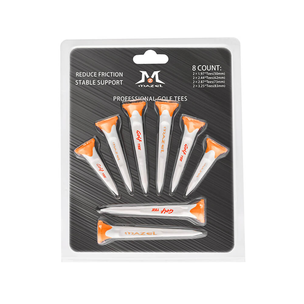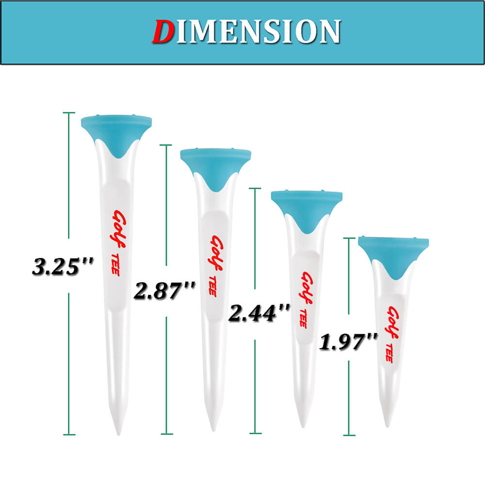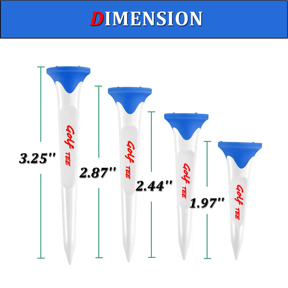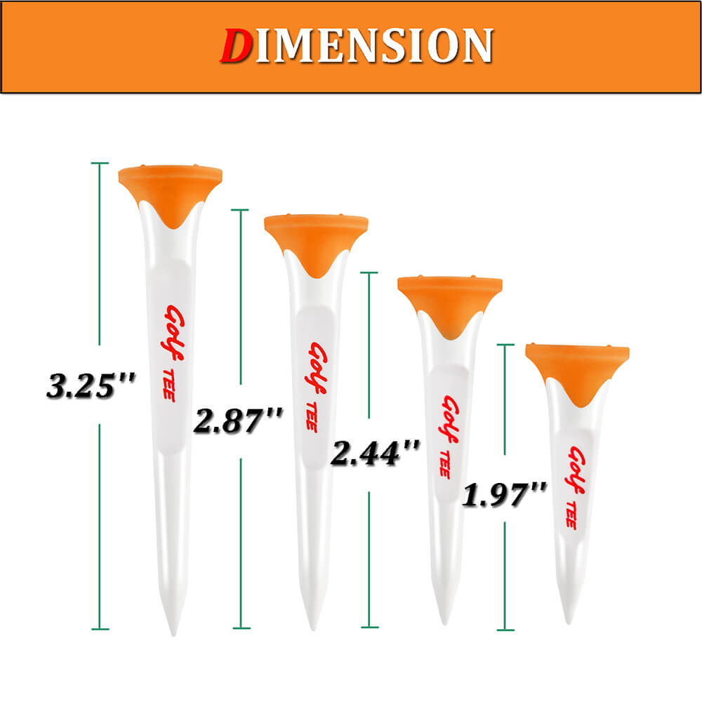 All golf tees are packaged well in the Plastic folding box,include 2*1.97”, 2*2.44”,2*2.87”,2*3.25”,unique colors in stock for your choice!