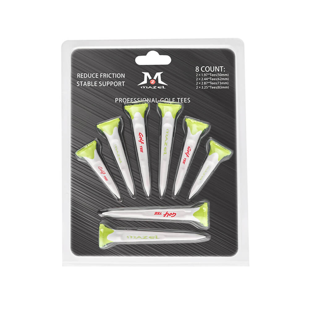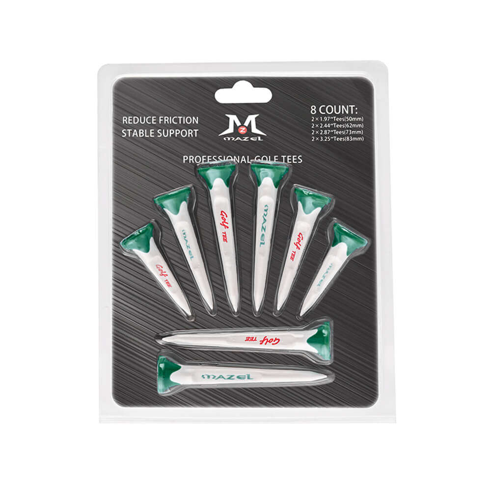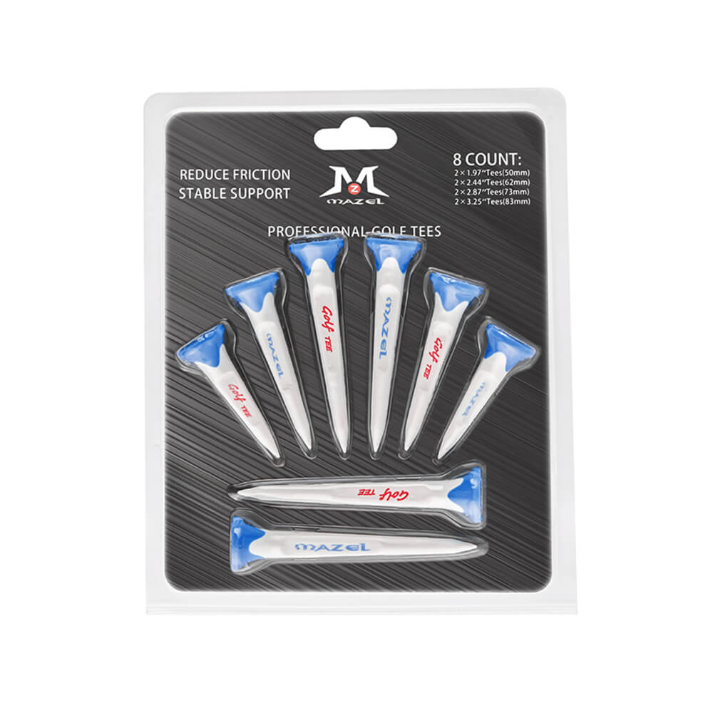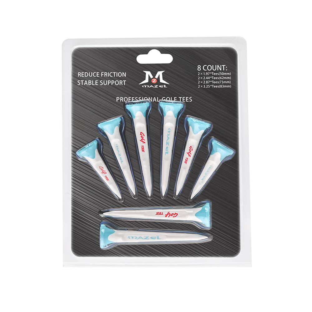 All golf tees are packaged well in the Plastic folding box,include 2*1.97”, 2*2.44”,2*2.87”,2*3.25”,unique colors in stock for your choice!