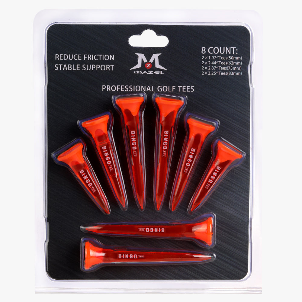 - 8 PACK TEES SET: Each set includes multiple heights( 2*1.97”, 2*2.44”,2*2.87”,2*3.25”) to suit drivers, woods, and hybrids,all golf tees are packaged well in the plastic folding case for easy transport!
